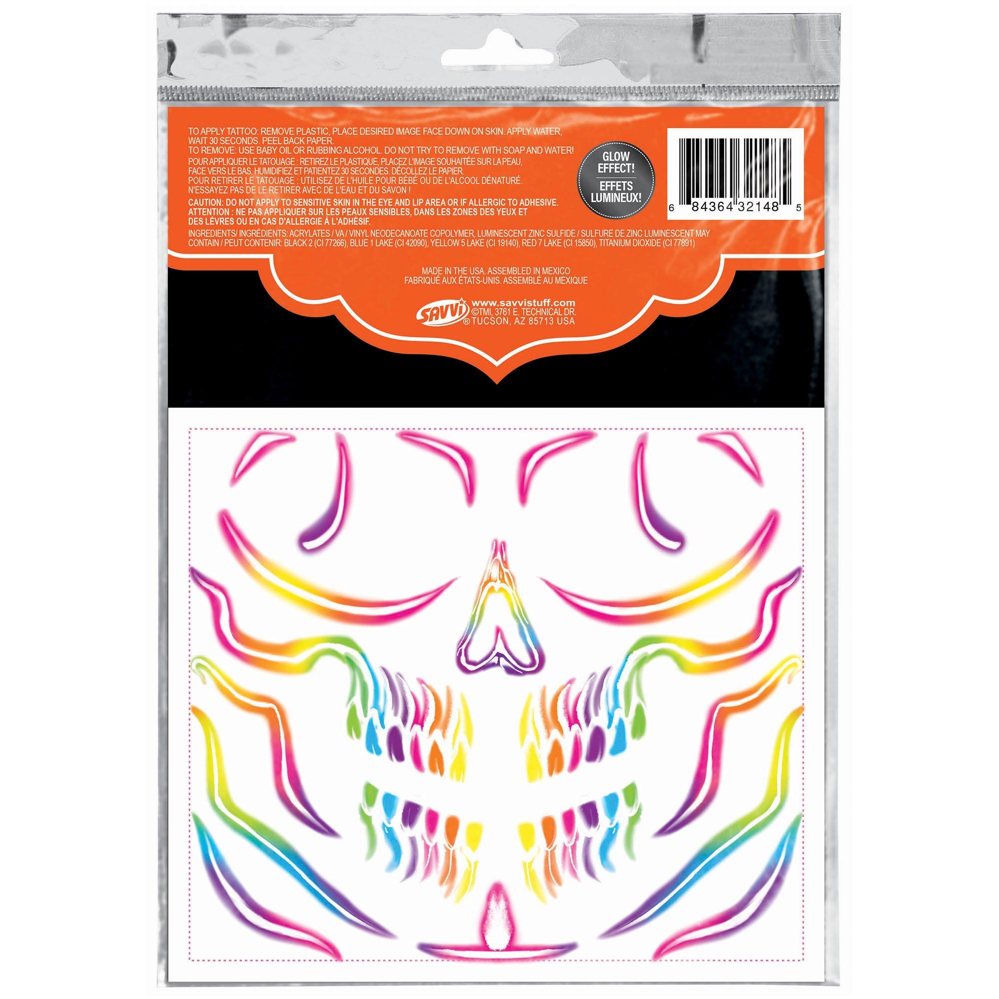 Glowing Bright Colorful Skull Temporary Face Tattoos 24pc Party City